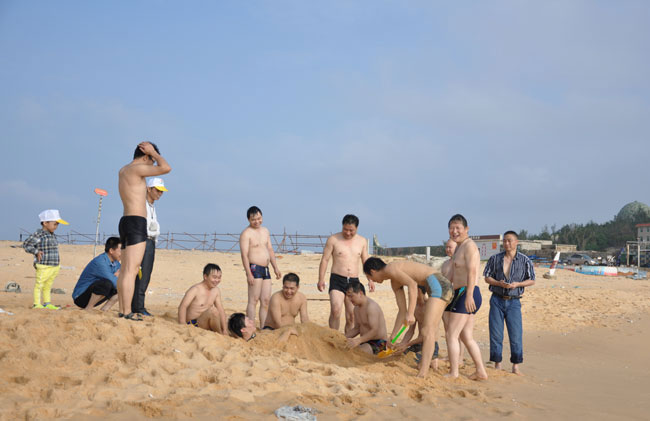 虽然到了深秋,海风习习,海水也有一丝丝凉意,参与活动的乐竞_乐竞(中国)总部50多名员工纷纷下海畅游,好不惬意。不少参与活动的员工家属也按捺不住活动开来。大家边游泳,边踏浪,也有的在沙滩上捡贝壳,孩子们拿着铲子挖沙,一个个玩得不亦乐乎。
