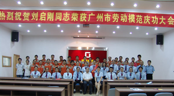 5月1日国际劳动节,广州市乐竞_乐竞(中国)设备制造有限公司花团锦簇、彩旗飘飘,欢乐和喜庆洋溢在每个国研人的脸上。下午16时,热烈祝贺刘启刚同志荣获广州市劳动模范庆功大会在乐竞_乐竞(中国)会议厅隆重举行。