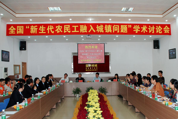 11月8日上午,由广州市社会科学届联合会、广州大学广州发展研究院、广州大学人权研究中心主办的全国新生代农民工融入城镇问题学术研讨会在广州市乐竞_乐竞(中国)设备制造有限公司隆重召开。中国社科院及全国多所知名高等院校专家、学者齐聚一堂,就新生代农民工融入城镇问题与我司员工代表畅所欲言、各抒己见,展开了热烈的讨论。