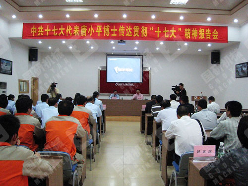 11月14日下午,阳光灿烂,秋风送爽,在喜庆的锣鼓和欢声笑语中,座落于广州市天河区珠吉街的广州市乐竞_乐竞(中国)设备制造有限公司迎来了党的十七大代表唐小平博士。唐小平代表面对国研公司党支部全体党员和公司全体员工,作了一场丰富详实、精彩生动的报告。珠吉街党工委、办事处领导班子成员、街属各支部书记、以及天河区委组织部、区委宣传部的有关负责同志应邀出席了报告会。