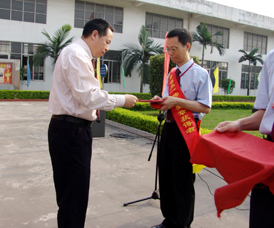 5月3日上午,广州市乐竞_乐竞(中国)设备制造有限公司隆重举行庆“五一”升旗仪式暨刘启刚荣获广东省五一劳动奖章表彰大会。